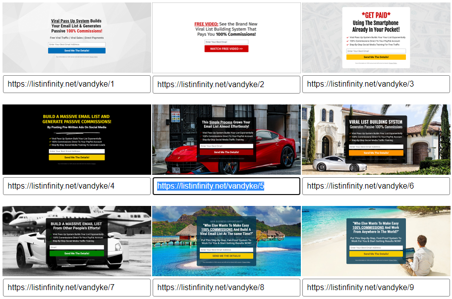 Making these hundred dollar commissions is everything you need to build a list fast and make passive 100 commissions. Converting viral lead capture pages and here’s just a sample of them right here.